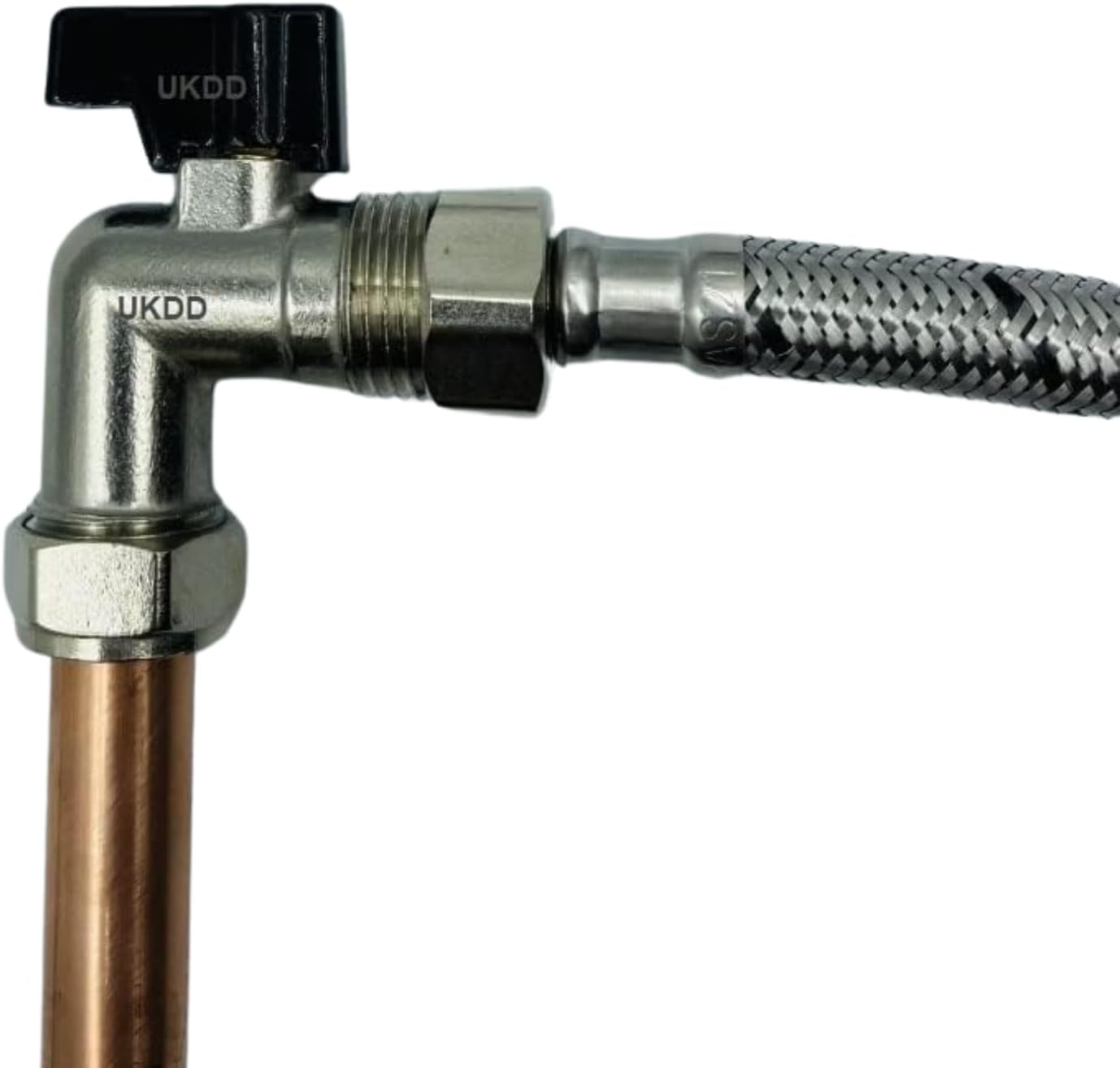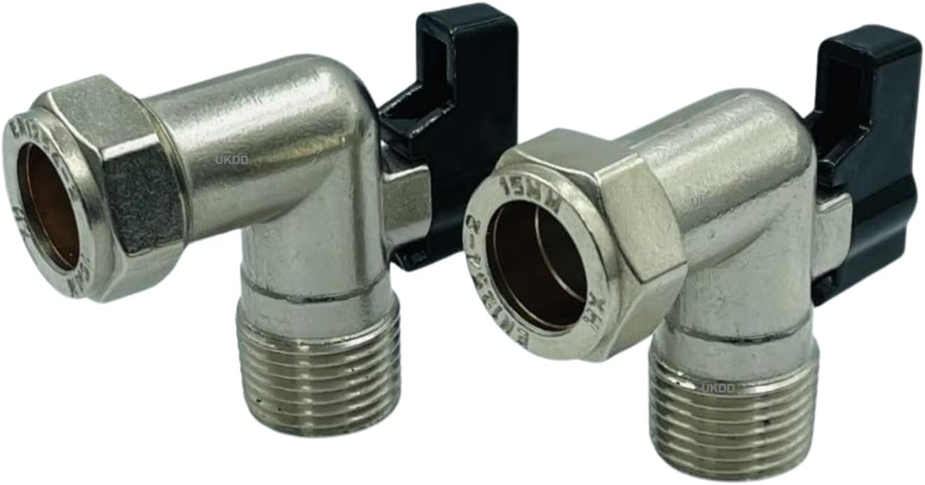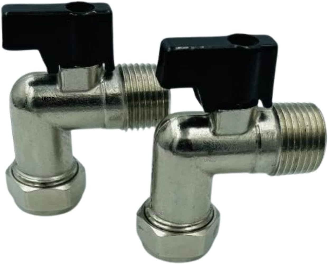 UKDeals Direct LTD Products 15mm x 1/2″ Elbow Isolation Valve Ball o fix Valves 90 Bend Full Bore Black Lever for Flexible Hose Suitable HOT & Cold WRAS Approved Pack of 2