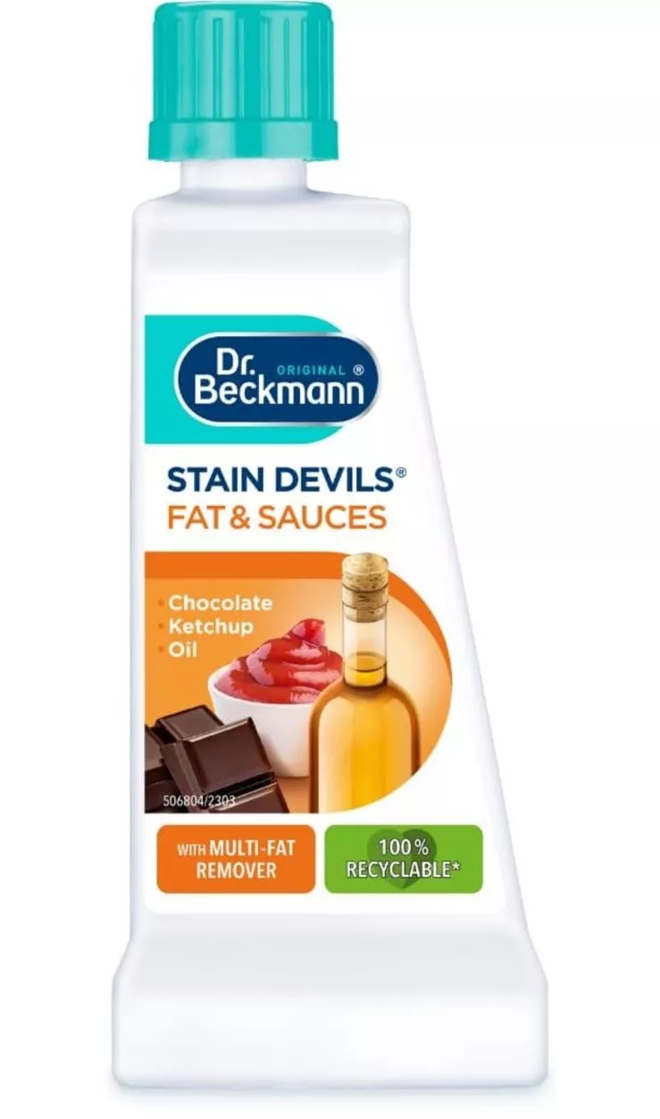 Stain Devils Fat & Sauces is the perfect solution to remove common tough cooking stains in just three minutes, whilst being gentle on fabrics, protecting you from spitting pans and spilled mixtures