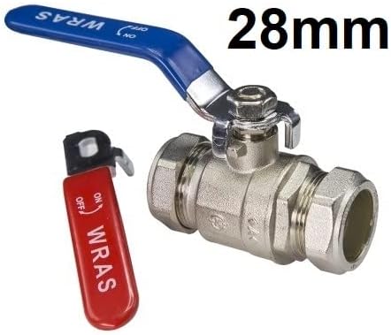 28mm Lever Valve Full BORE Ball Valve Compression Isolation Valve with RED & Blue Handle WRAS Approved