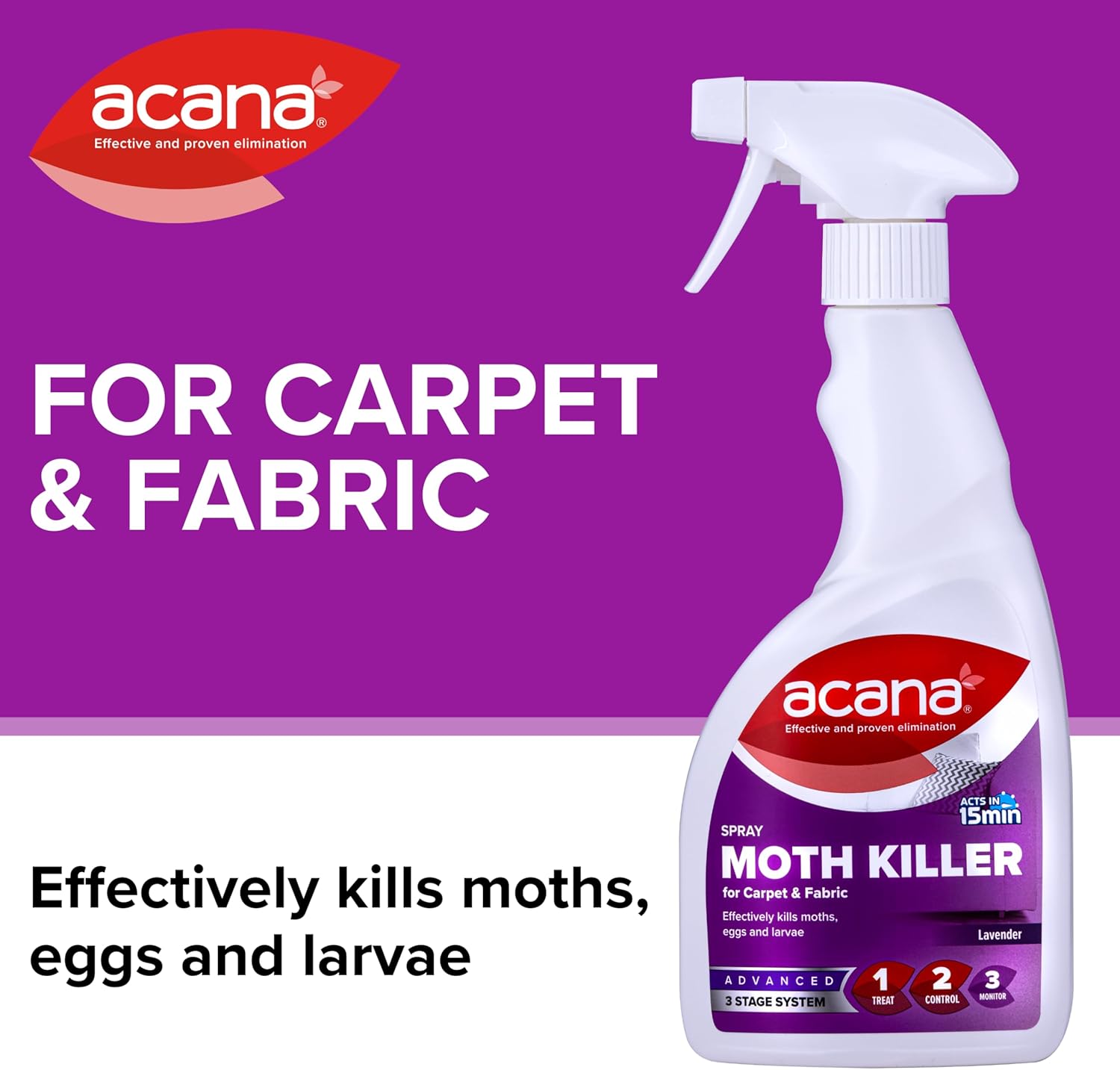 Acana Carpet & Fabric Freshener 500ml – Moth Killer Spray – Lavender Fragrance – for Carpets, Rugs & Curtains