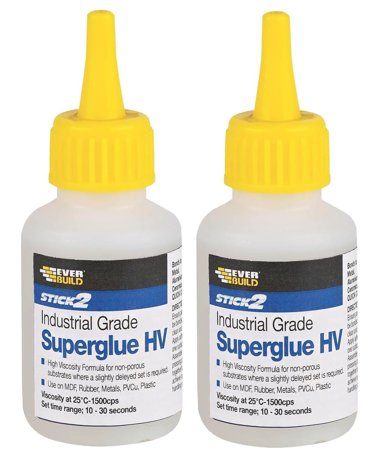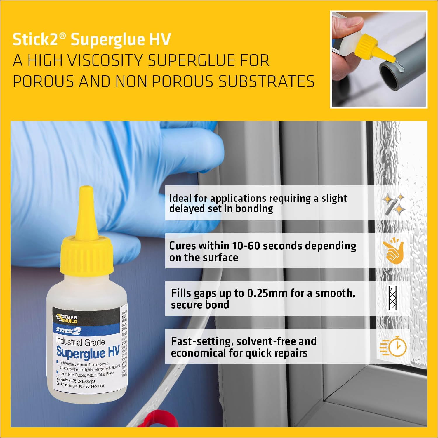 Everbuild Stick2 Superglue High Viscosity Industrial Grade High Strength Rapid Setting Clear 50g (HV50) Pack of 2