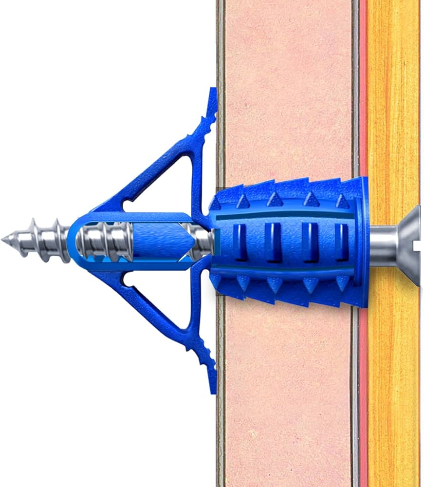 The ‘ wings’ prevent pull-out with the spreading action activated by tightening the screw.
