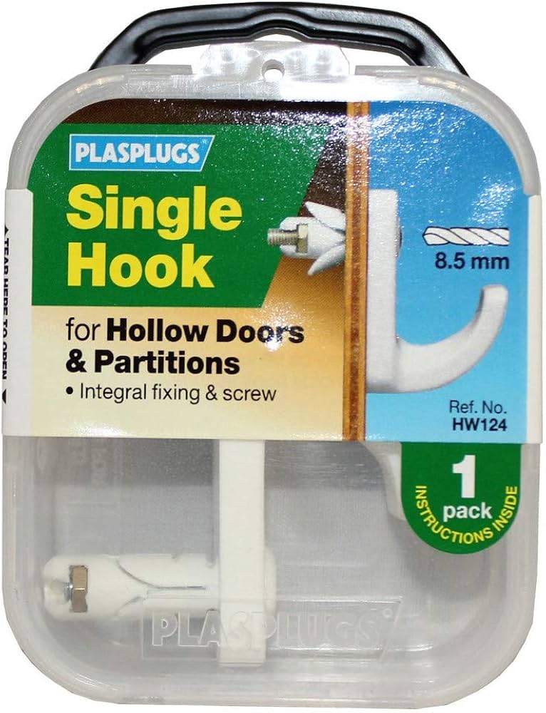 PLASPLUGS HOLLOW DOOR HOOK SINGLE