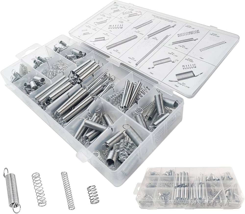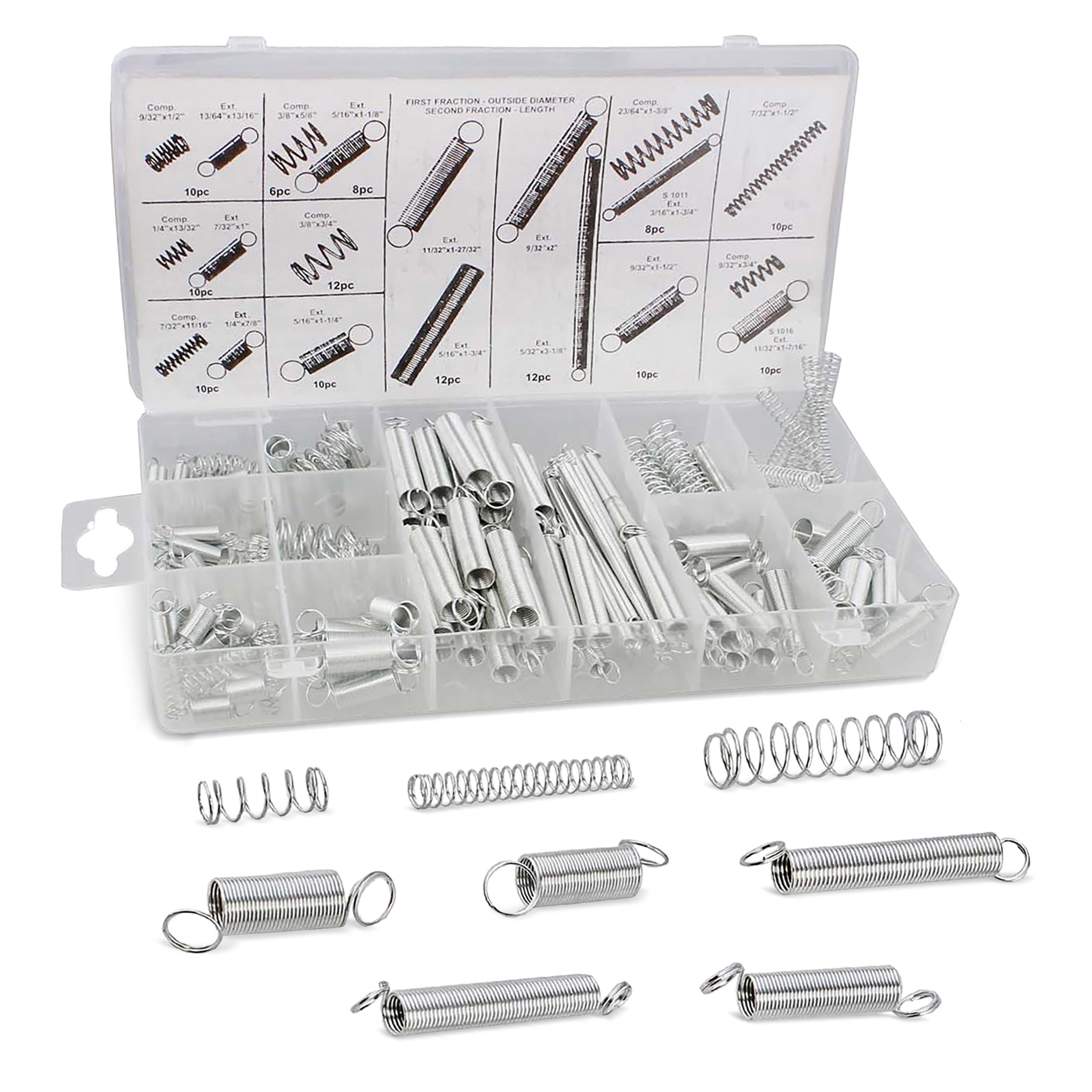 - Compressed springs 10pc 7.1 x 12.7mm, 10pc 6.4 x 10.3mm, 10pc 7.1 x 19.1mm, 6pc 9.5 x 15.9mm