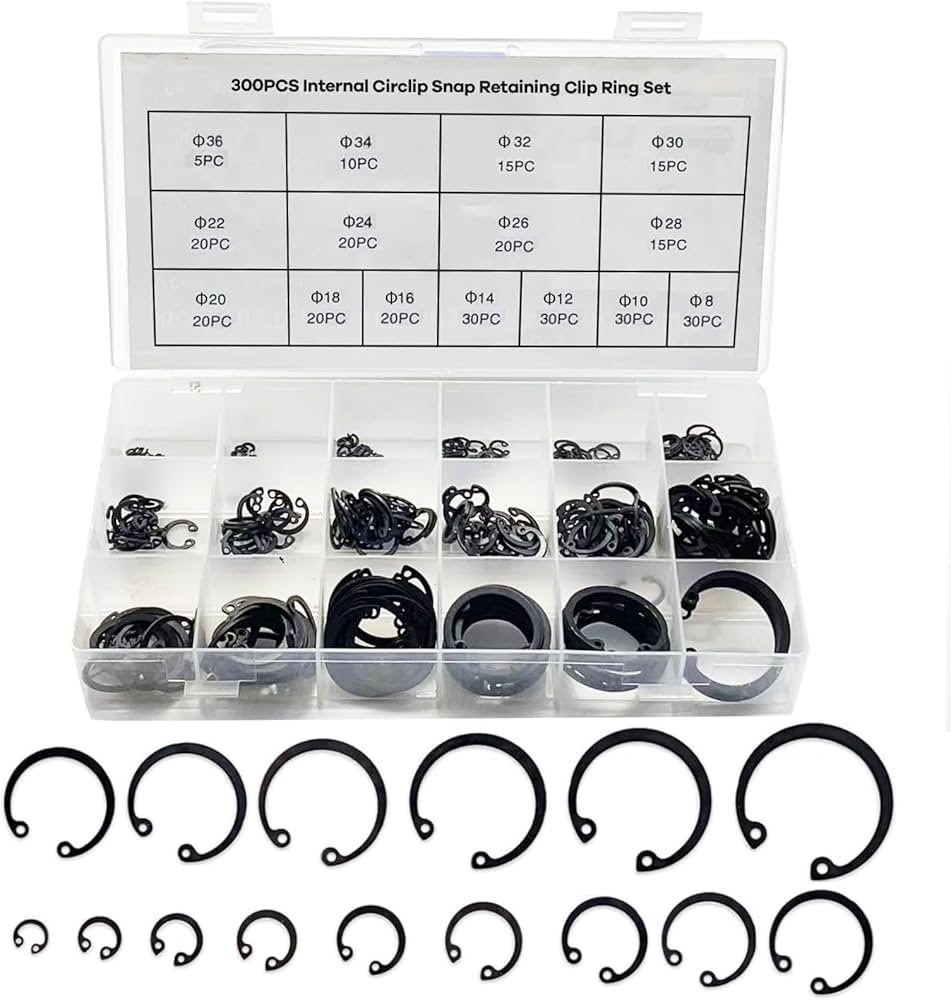 - Assortment of 300 external circlips – Contains 18 popular sizes